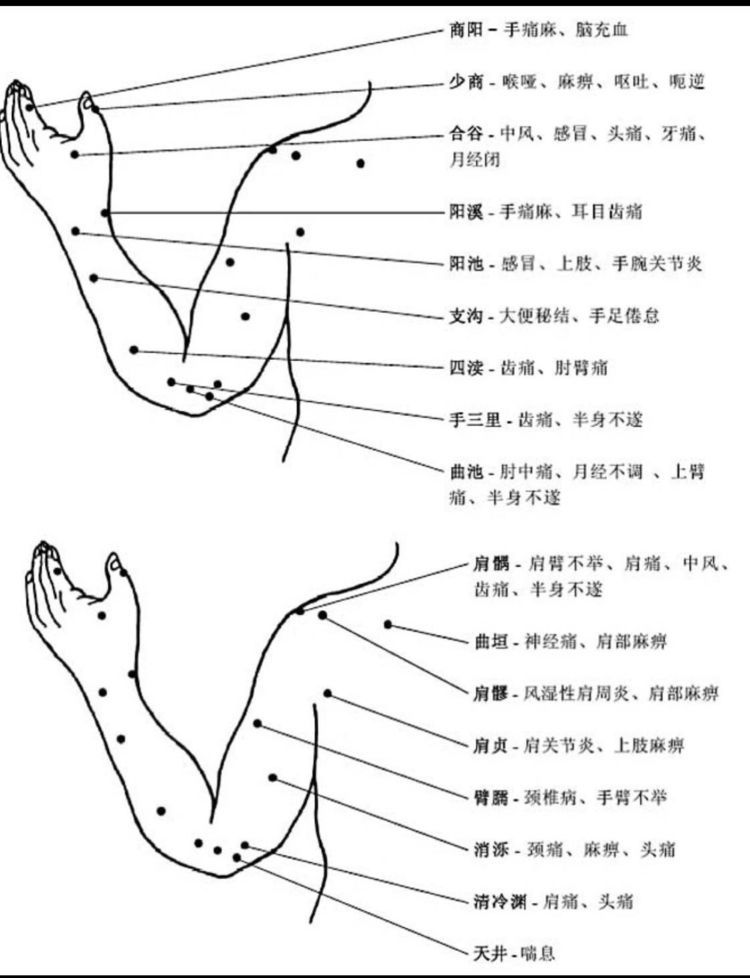 肩髃穴的作用:治疗肩臂不举、肩痛、中风、齿痛、半身不遂