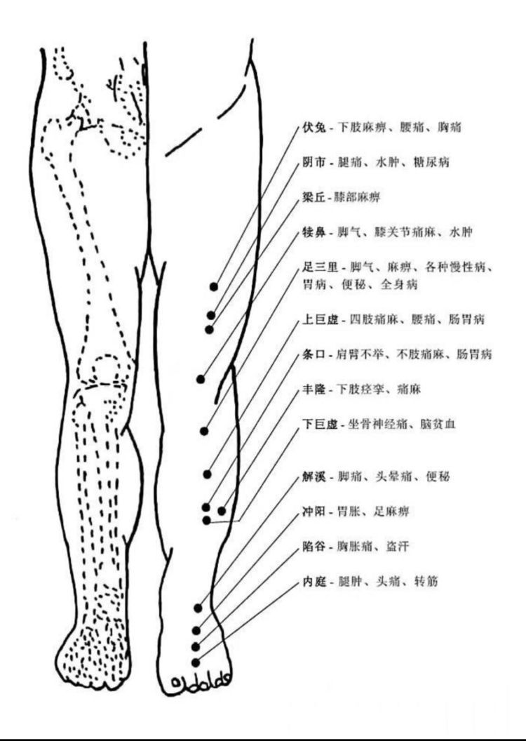 足三里穴的作用:治疗脚气、麻痹、各种慢性病、胃病、便秘、全身病